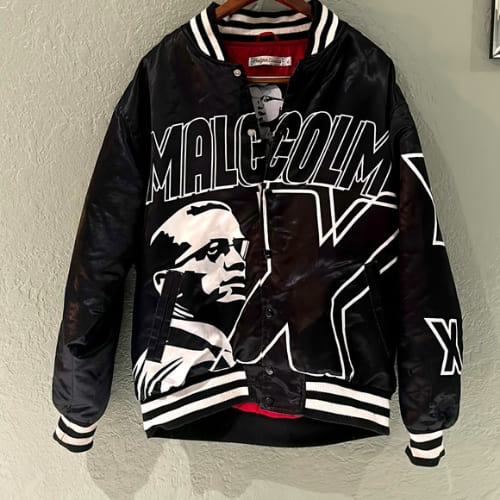 This jacket pays tribute to a legendary figure, combining satin fabric with powerful imagery to create a statement piece that resonates with history and style.
