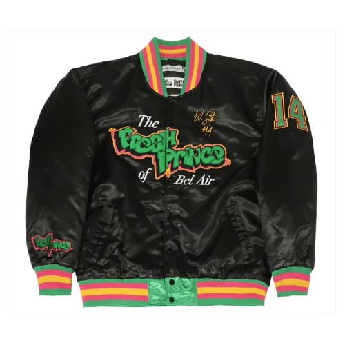 Channeling the vibrant energy of the ’90s, this jacket brings the flair of the Fresh Prince era to contemporary fashion, perfect for those looking to add a pop of color and nostalgia to their wardrobe.